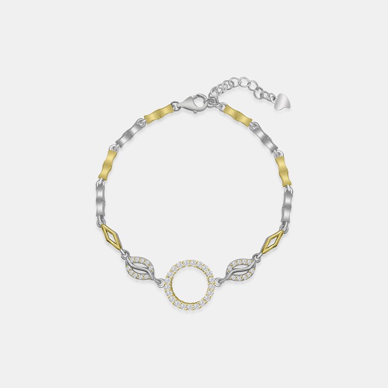 This bracelet comes with loop, leaf and rhombus motif studded in cubic zirconia (CZ) stones in yellow gold and silver colour combination. Comes with 925 Sterling Silver Hallmark.